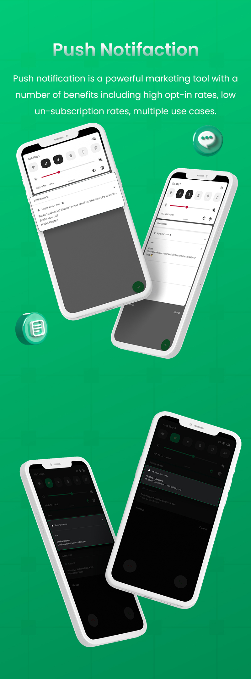 凭借成熟的架构与丰富的通讯功能,MightyChat 能帮助开发者迅速搭建属于自己的聊天社交应用。